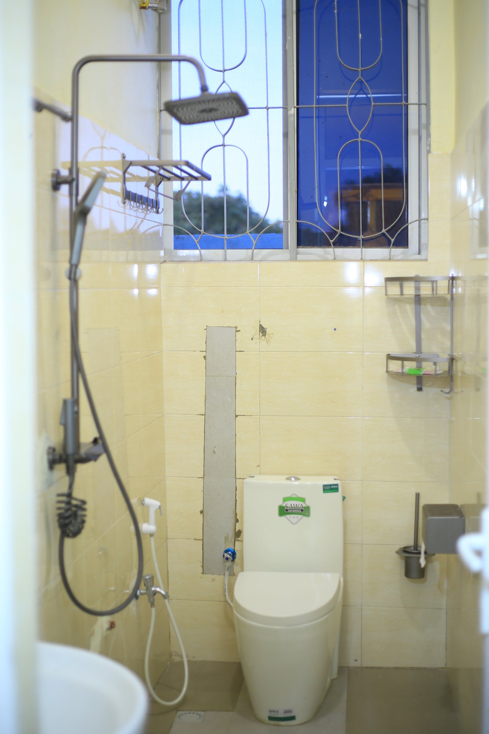 The Deluxe Room is designed for guests who desire extra comfort and a relaxing stay. It is equipped with a spacious 5×6 bed to ensure a good night’s sleep, an air conditioner for a cool and comfortable environment, and a modern seated toilet with both white and black shower finishes for a stylish bathroom experience.